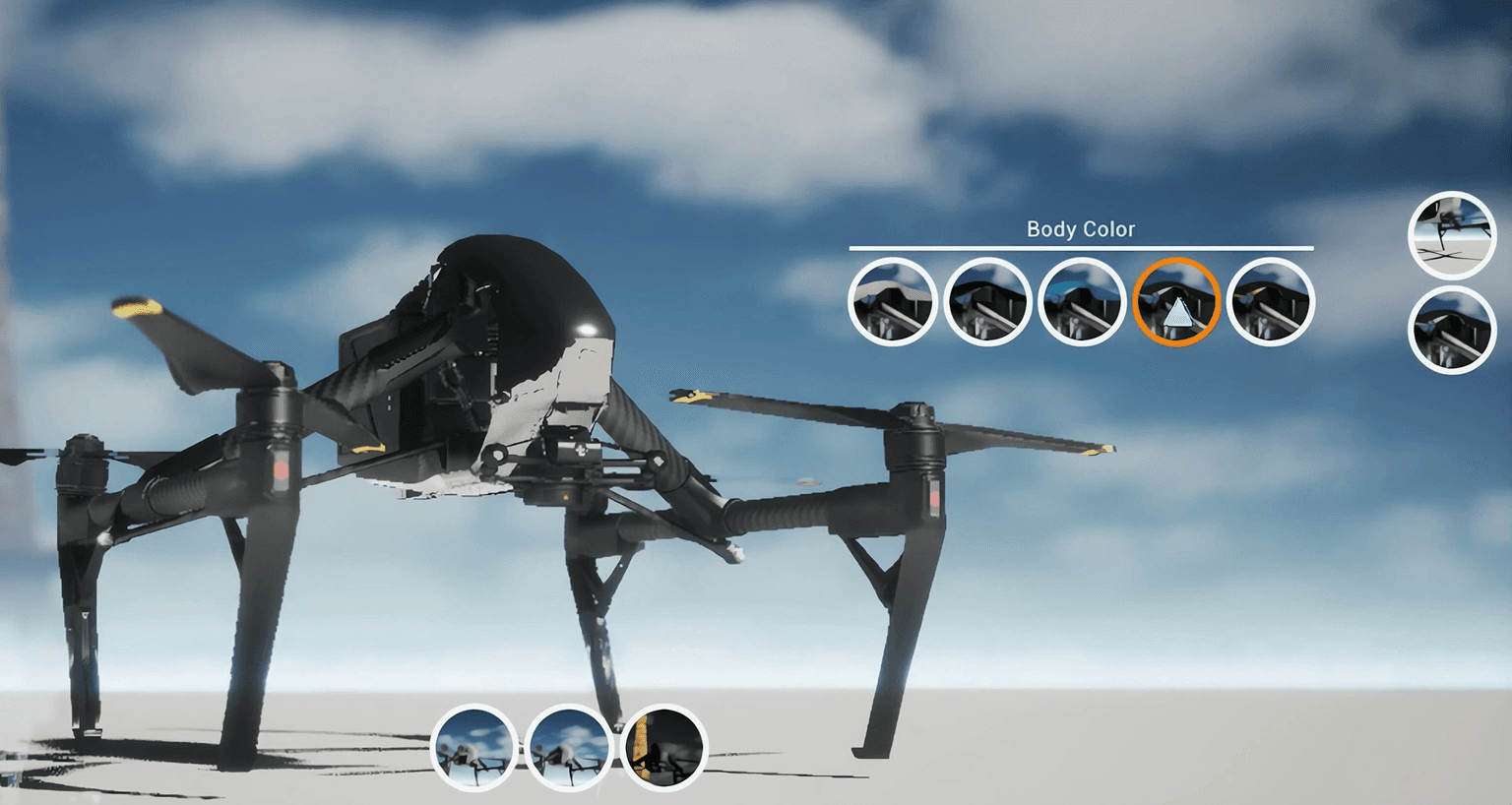 The project was developed entirely in Unreal Engine, using real-time rendering to animate the DJI Inspire 2 in flight within a Paris environment. The sequence transitions from a cinematic aerial animation to a precise configuration breakdown, highlighting the drone’s modular components and design. Unreal Engine’s real-time lighting, materials, and camera systems were used to achieve a realistic and dynamic product visualization.